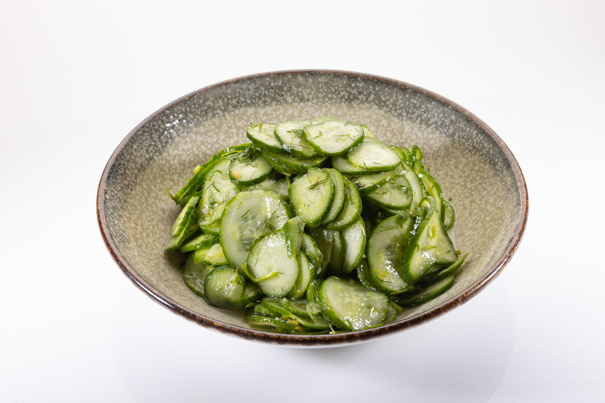 עיגולים דקים של מלפפון ושמיר ברוטב מסורתי